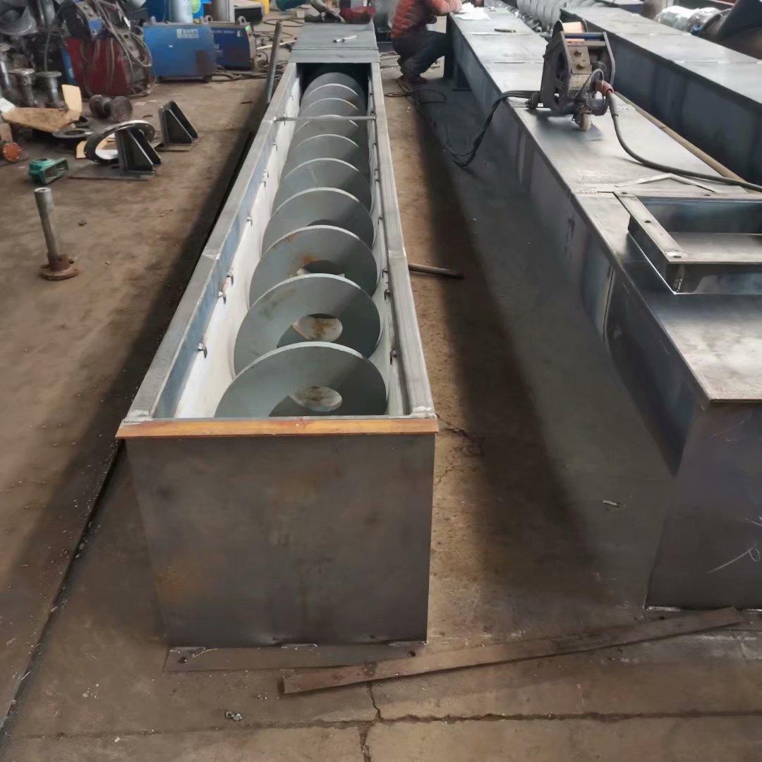 無軸螺旋輸送機一種沒有中心思的螺旋輸送機,分為U型無軸螺旋輸送機、管式無軸螺旋輸送機,常用U型螺旋輸送機規(guī)格有:U型200,250,300,400,500,長度:4米-50米??筛鶕蛻粢蠖ㄗ觥?br />U型無軸螺旋輸送機用于輸送煤粉,鋁粉,碳硅粉,水泥,糧食,石灰粉等物料。它的殼體為U形,機殼上部可加設槽蓋。適用于水平輸送,并可敞開加料。屬于螺旋輸送機的一種,由驅動裝置、U型槽、襯板、上蓋、進料口、法蘭等部件組成,采用DIN15261-1986標準,設計制造符合《螺旋輸送機》專業(yè)標準,是在糧食、化工、建材、冶金、礦山、電力等部門中廣泛應用的一種輸送物料設備。U型無軸螺旋輸送機中間吊軸承采用滾動、滑動可互換的兩種結構,阻力小,密封性強,耐磨性好,使用壽命長。